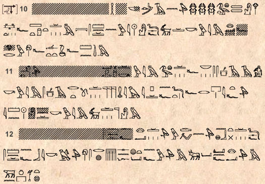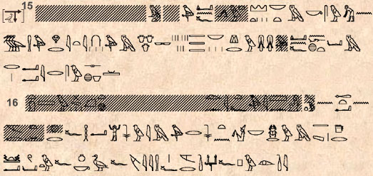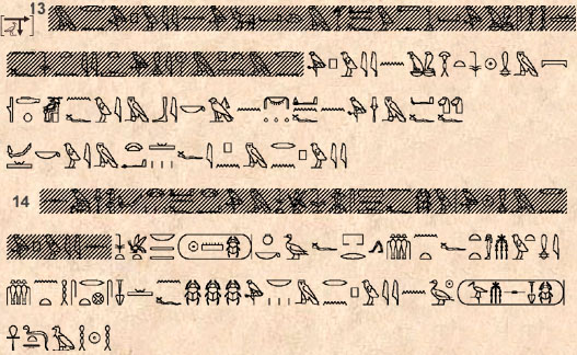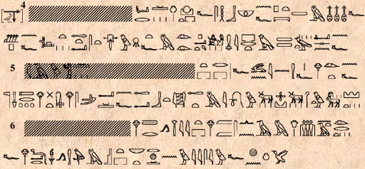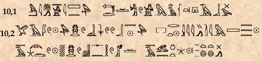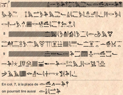 (723) Voir à ce propos la grammaire de P. Grandet et de B. Mathieu, page 655 à 665, où des exemples de distiques heptamétriques aux §§ 2-3 (colonne 18 du texte de la jeunesse) et de distiques ennéamétriques au § 5 (hymne triomphal à Amon, stèle 34010 de Thoutmosis III du Caire) sont disséqués et expliqués.