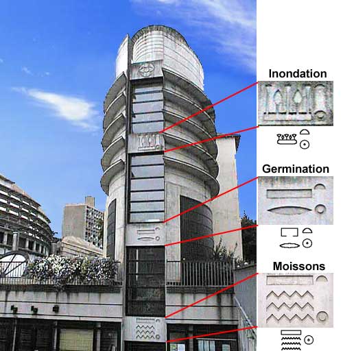 Ce calendrier continue d'ailleurs à intéresser nos contemporains, car en 1989, l'architecte Alessandro ANSELMI a reproduit dans le béton, à la nouvelle mairie de Rezé (Loire-Atlantique), les hiéroglyphes