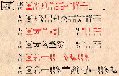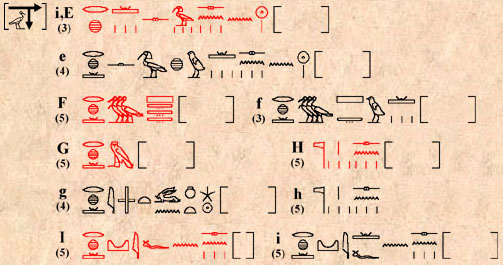 textes hiéroglyphiques, le chiffre entre parenthèses indique le numéro