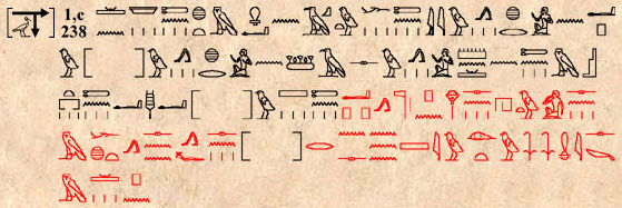 A droite des quatre registres, sur toute leur hauteur, un texte de conclusion sur neuf colonnes montre le dieu solaire donnant des ordres aux divinités du monde souterrain. Puis on lui adresse un hymne de louange et de bienvenue, car il vient pour faire respirer le lieu de la destruction, Osiris et ceux qui y résident [1,c 232-235]. Enfin, le dieu donne des consignes précises pour que chaque divinité remplisse parfaitement la fonction qui lui est assignée.