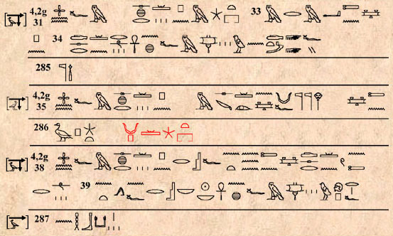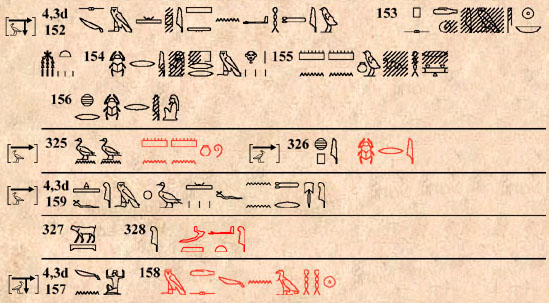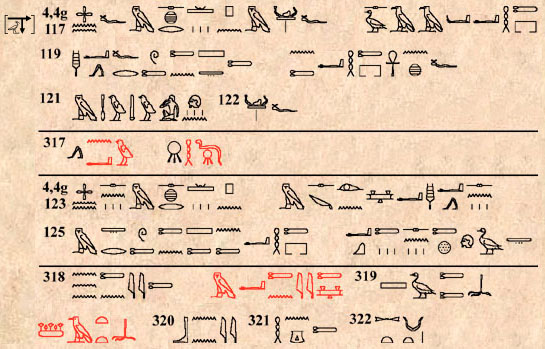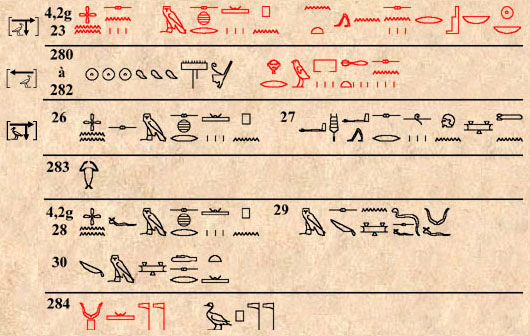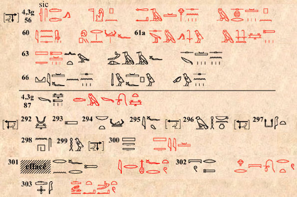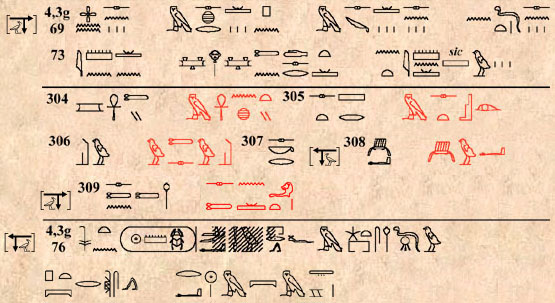 (182) Léger désordre dans quelques hiéroglyphes au § 4,4g 130.