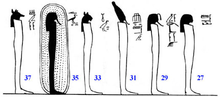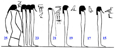 à 37, tels qu'ils sont décrits dans la Grande Litanie de Rê dont