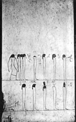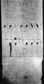 - [L,29] Celui qui gémit [corps humain momiforme, portant une barbe
